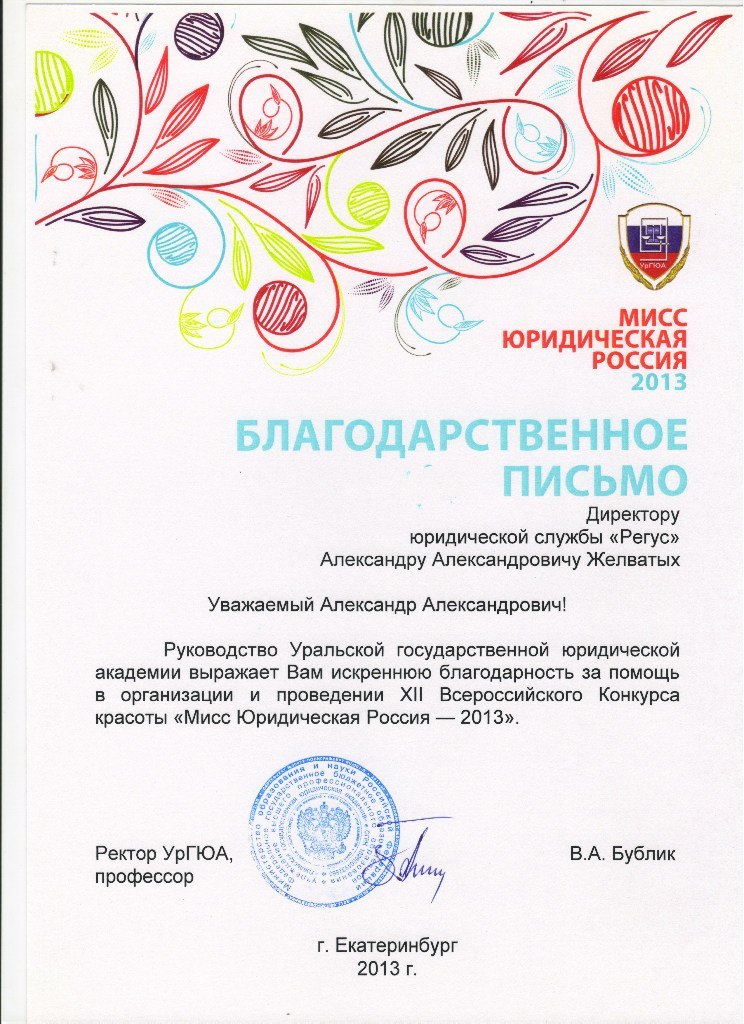 "Хотелось бы выразить огромную благодарность сотрудникам Центра правовых услуг «Регус»- Желватых Александру и Ивану Кучину, за успешное завершение судебного процесса по моему делу. Желаю успехов и дальнейшего процветания организации" Подробнее